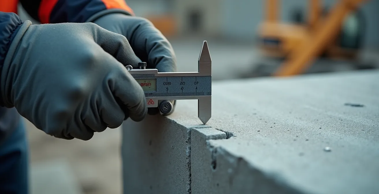 Après avoir planifié la stratégie de découpe adaptée, il faut mettre en place des dispositifs de surveillance pour valider en continu que la préservation est effective. Le monitoring temps réel comble le fossé entre calcul prévisionnel et réalité de chantier, car aucun modèle numérique ne capture exhaustivement les hétérogénéités matérielles et les pathologies localisées. Les fissuromètres mécaniques ou électroniques constituent le premier niveau de surveillance, installés sur les éléments adjacents à la zone de découpe avant tout démarrage des travaux.